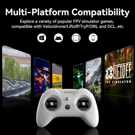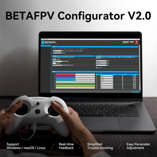 - Este transmisor presenta un mango con diseño ergonómico y un rendimiento excepcional en su tiempo de trabajo, además de un gimbal recién actualizado. Además, esta versión es compatible con BETAFPV Configurator, una herramienta diseñada para actualizar, configurar y ajustar fácilmente el controlador de radio. Experimenta la emoción de la inmersión total con un control inigualable y captura el mundo que te rodea.