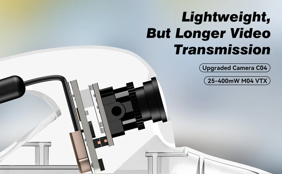 - Cetus X incluye el VTX M04 de 25-400mW y la cámara FPV C04. Ambos VTX cuentan con un diseño ligero y potencia de salida ajustable para vuelos de mayor distancia. Al combinar este VTX con el excelente enlace de radio ExpressLRS 2.4G, los pilotos pueden volar drones whoop durante más tiempo para explorar más posibilidades y divertirse. Además, la cámara FPV C04 (basada en la Caddx Nano Ant Camera/Runcam Nano 4) ofrece una mejor calidad en vuelos FPV en comparación con la cámara FPV C02.