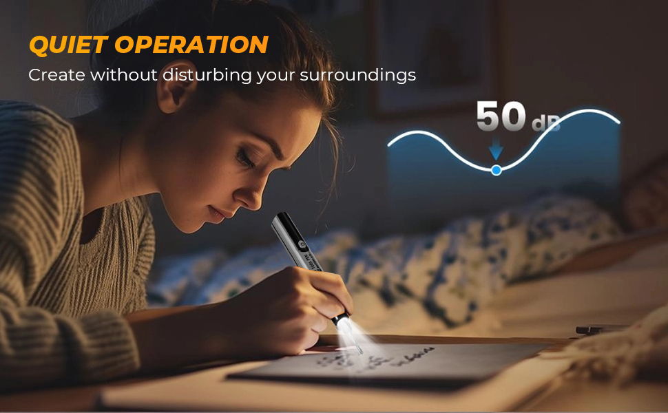 Kentfaith mini herramienta rotativa inalámbrica funciona con solo 50dB. Ya sea que estés creando tarde en la noche o aprovechando un tiempo creativo en tu escritorio, no perturbará la tranquilidad.