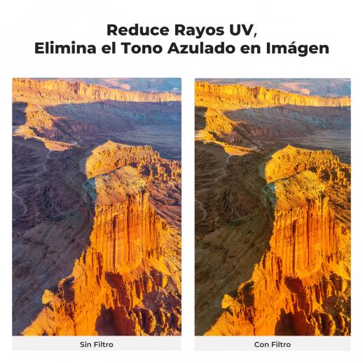 - * Filtro UV de vidrio templado resistente, con una transmitancia de luz de hasta el 99,3%, que permite obtener imágenes de calidad HD.
