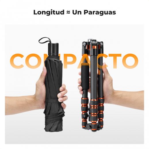 - * 【Trípode Fibra de Carbono】Este Trípode de Viaje está fabricado en fibra de carbono, que es resistente al calor,a la corrosión, un 30% ligero que lo de alumino. Gracias al material carbono, este trípode ligero es más fuerte, estable y compacto. Es el mejor opción para fotografía al aire libre.