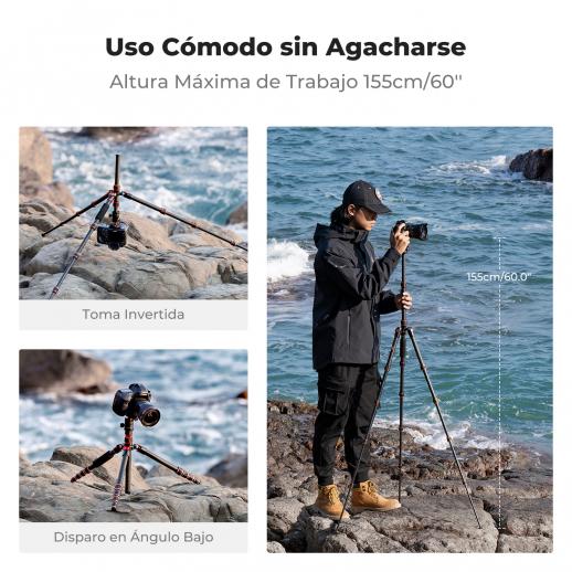- * 【Versátil Trípode】La columna central se puede invertirse para realizar el disparo con un ángulo bajo, macro-fotografía, fotografía especial, o cualquier otro tipo de fotografía creativa, que puede grabar los movimientos de plantas o insectos.
