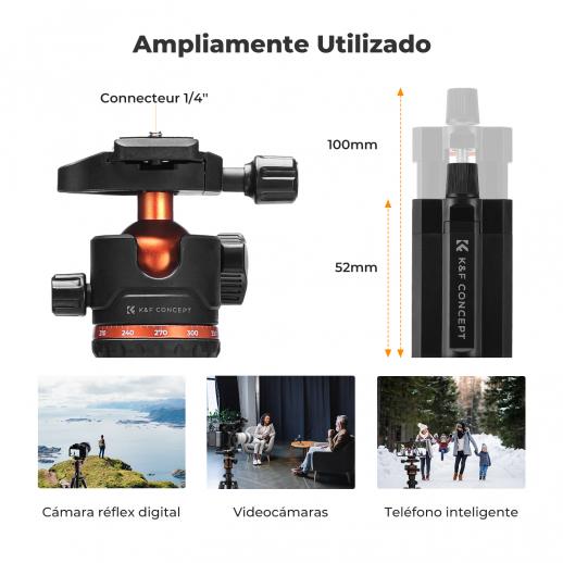 - * El cabezal adopta una bola grande de 36 mm para garantizar la estabilidad del cabezal; el nuevo diseño de amortiguación sin aceite permite que la cámara gire con suavidad y precisión. Con la escala horizontal de 360 grados en la parte inferior del cabezal, tomar fotos panorámicas es más fácil y produce efectos más impresionantes que los objetivos ultra gran angular, y la capacidad de carga del cabezal es de hasta 8Kg.