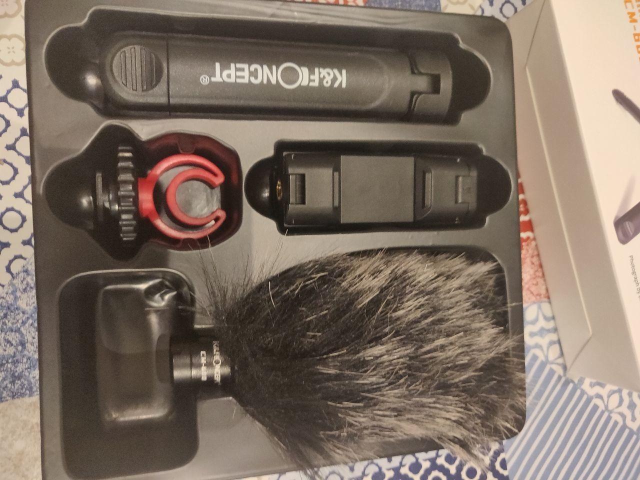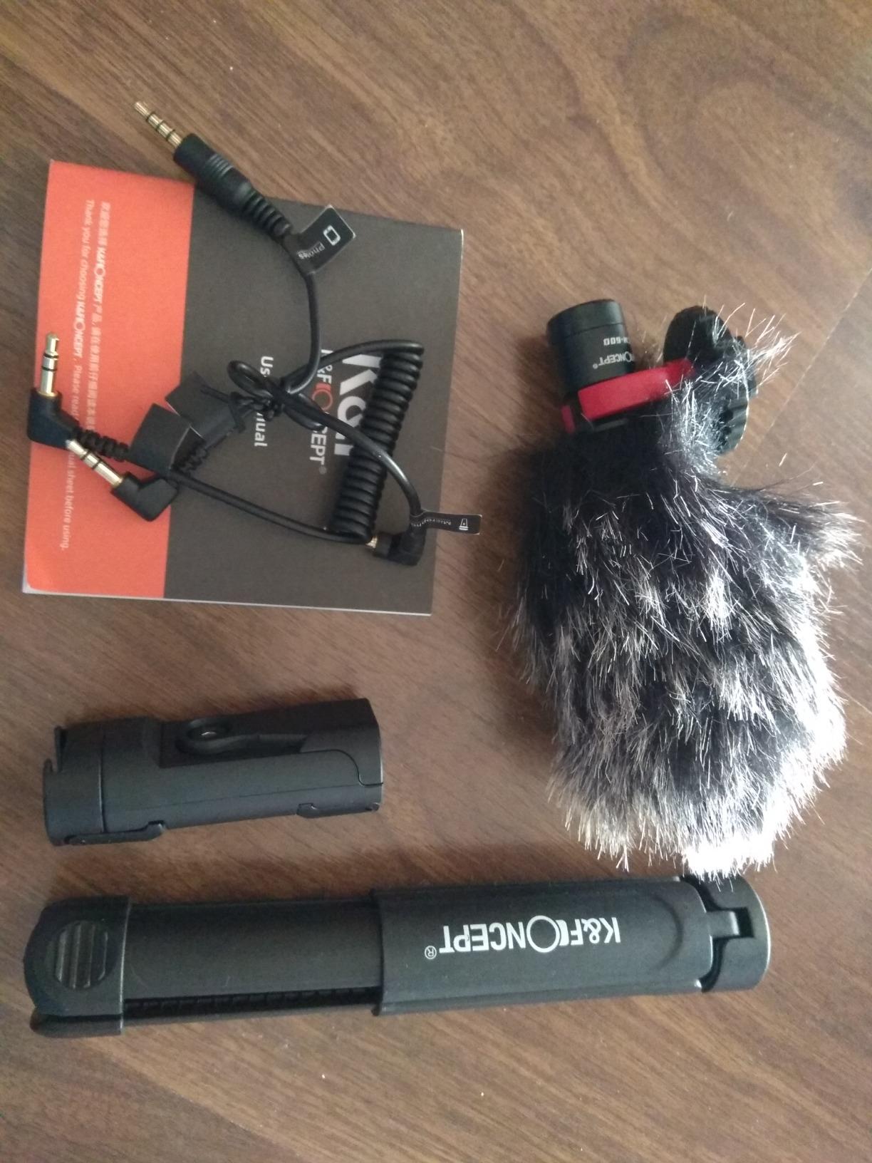 Genial kit de micrófono para cámara o móvil. Nada más abrirlo se ve un bonito empacado del conjunto, con todos los gadgets ordenados. Los materiales de todos los componentes son de buena calidad con buenos acabados, por mencionar el más destacable, el recubrimiento de pelo es muy suave (entiendo que es sintético) y no suelta fibras. El resto de componentes están muy bien pensados, ya que al final sirve para usar con cámara réflex o con móvil, el cableado que trae es suficiente para conectarlo e incluso moverlo o colocarlo en distintas partes. Una vez analizando su uso, realmente se distingue totalmente la calidad respecto al micro de la cámara o móvil, el sonido es totalmente nítido y además el pompón aunque voluminoso ayuda a quitar bastante ruido agudo. EL micro no es direccional, hay que tenerlo claro, capta menos la parte que queda detrás de el, pero es casi un micro ambiental.Por lo que he podido probar, ningún pero, bueno uno mínimo, que es cuando quitas la funda de pelo, luego hay que tener maña para volver a ponerlo, un velcro no estaría mal.Producto de muy buena calidad, totalmente recomendable.