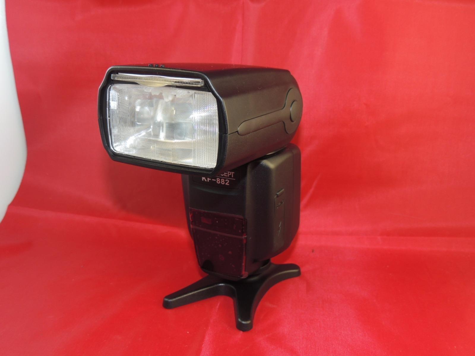 El KF-882-N esta diseñado para la cámara SLR / DSLR de Nikon.Nos ofrece una cobertura de flash para una lente focal 18 mm de longitud a 180 mm con una guía de de 56 (ISO 100; 180 mm).La función TTL es impresionante y hace que la exposición sea mucho más fácil, más rápido y siempre perfecta.Este flash puede actuar como maestro frente a otros destellos, o actuar como una unidad esclava, por tanto, aumentar la flexibilidad de este flash.La sincronización de alta velocidad le permite tomar fotografías en cualquier velocidad de obturación .El panel LCD permite un fácil acceso para configurar del flash y mostrar toda la información que necesita para operar con él.El KF-882 permite a los fotógrafos una mejor calidad de imagen y fiabilidad de disparo, en situaciones de poca luz o cuando necesitamos hacer fotos con flash de relleno.Otra de sus características es la posibilidad de mover la cabeza 90º, y el cuerpo rotar 180º, el flash trae escondidos un difusor de luz y una cortinilla blanca para producir reflejo de la luz.Para Cámaras SLR/DSLR de Canon o Nikon, pero este modelo es solo para Nikon.Características:Guía No .: 56 (ISO 100; 180 mm)Modo de flash: TTL, M, S1 / S2, Multi, HSSRango del zoom: 18 ~ 180 mmSincronización de alta velocidad: DisponibleTiempo de reciclaje: alrededor de 2.9s (a plena potencia)Frente y detrás de la cortina de sincronización: DisponibleOperación del menú: DisponibleDesarrollado por: 4 pilas de AA (no incluido)Tiempos de iluminación: 150 veces (a plena potencia)Temperatura de color: 5500K ± 200KDimensión: 20 x 7 x 5'7 cmPeso neto: 408 sin pilas.Interfaces externos: puerto de sincronización de PC.Mi impresión persona es la de un Flash con una relación calidad/precio bastante buena, frente otras de marca, que con estas mismas características no encontraras por menos de 200 euros.Recomiendo su compra.