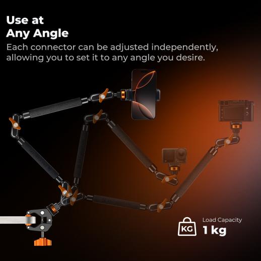 • * [Combinación versátil] - La abrazadera de brazo mágico está fabricada íntegramente en metal para mayor durabilidad. Ambos brazos largos están recubiertos con espuma antideslizante para proteger el equipo de rayones y soportan hasta 1 kg (2,2 lb).