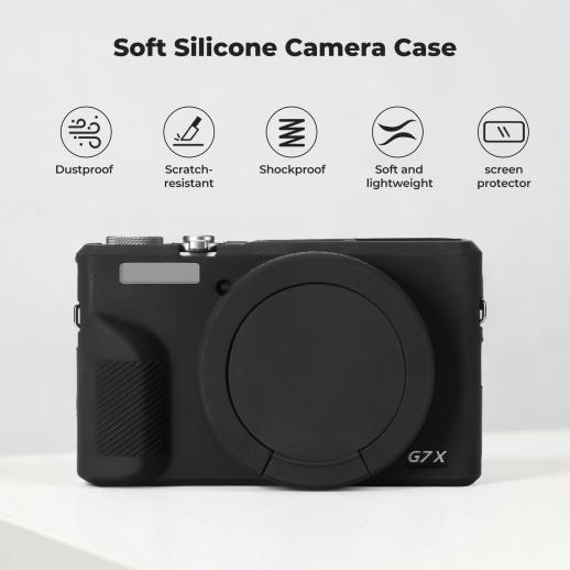 Funda protectora de silicona para Canon G7X III con protector de pantalla, antiarañazos, resistente a golpes, suave, color negro