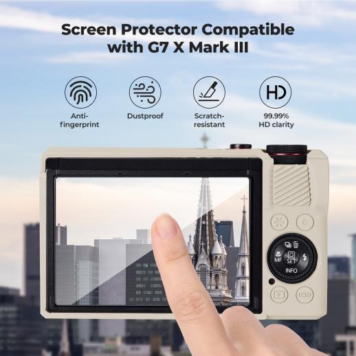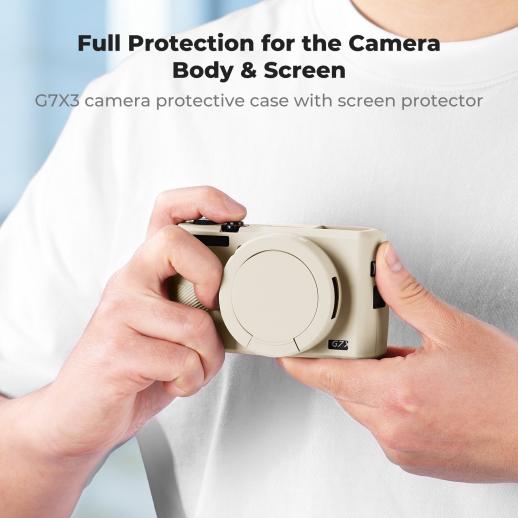 Funda protectora de silicona para Canon G7X III con protector de pantalla, antiarañazos, resistente a golpes, suave, color beige