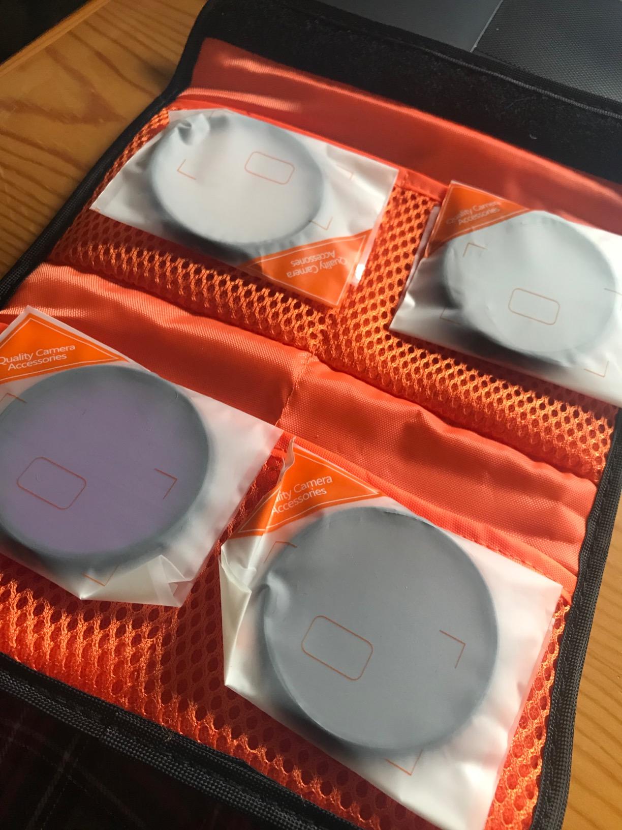 Los filtros vienen muy bien protegidos, encajan a la perfección y el lápiz de limpiar la lente muy útil. El parasol fatal porque se come las esquinas en la foto.