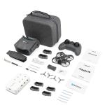 El kit todo en uno incluye el cuadricóptero invertido Aquila16, las gafas VR03 FPV (con capacidad de grabación de vuelo), el transmisor de radio LiteRadio 2 SE precargado con firmware ELRS 3.0 y una batería de 1100mAh. Todo el equipo esencial para volar está incluido, no se requieren compras adicionales.
