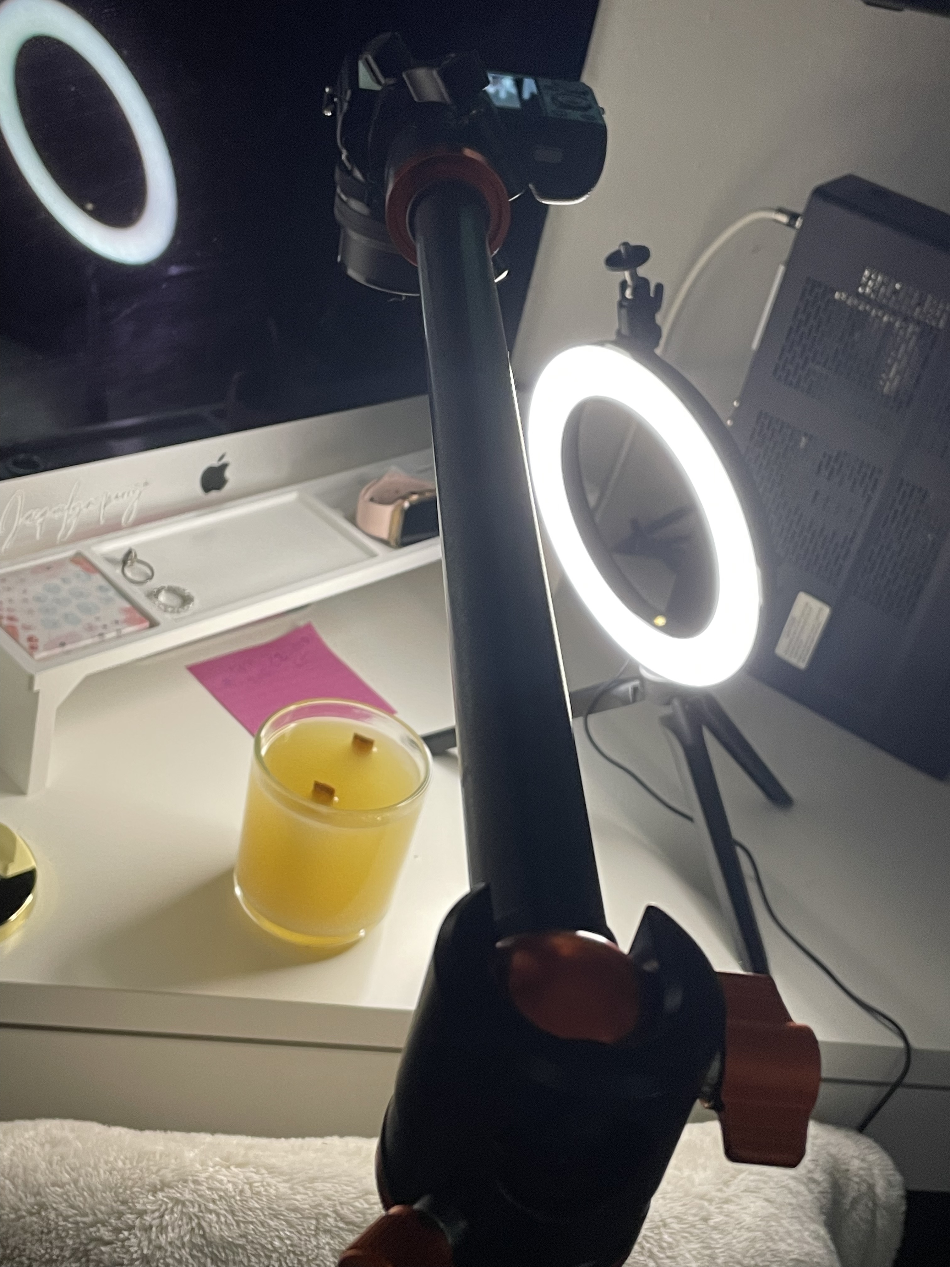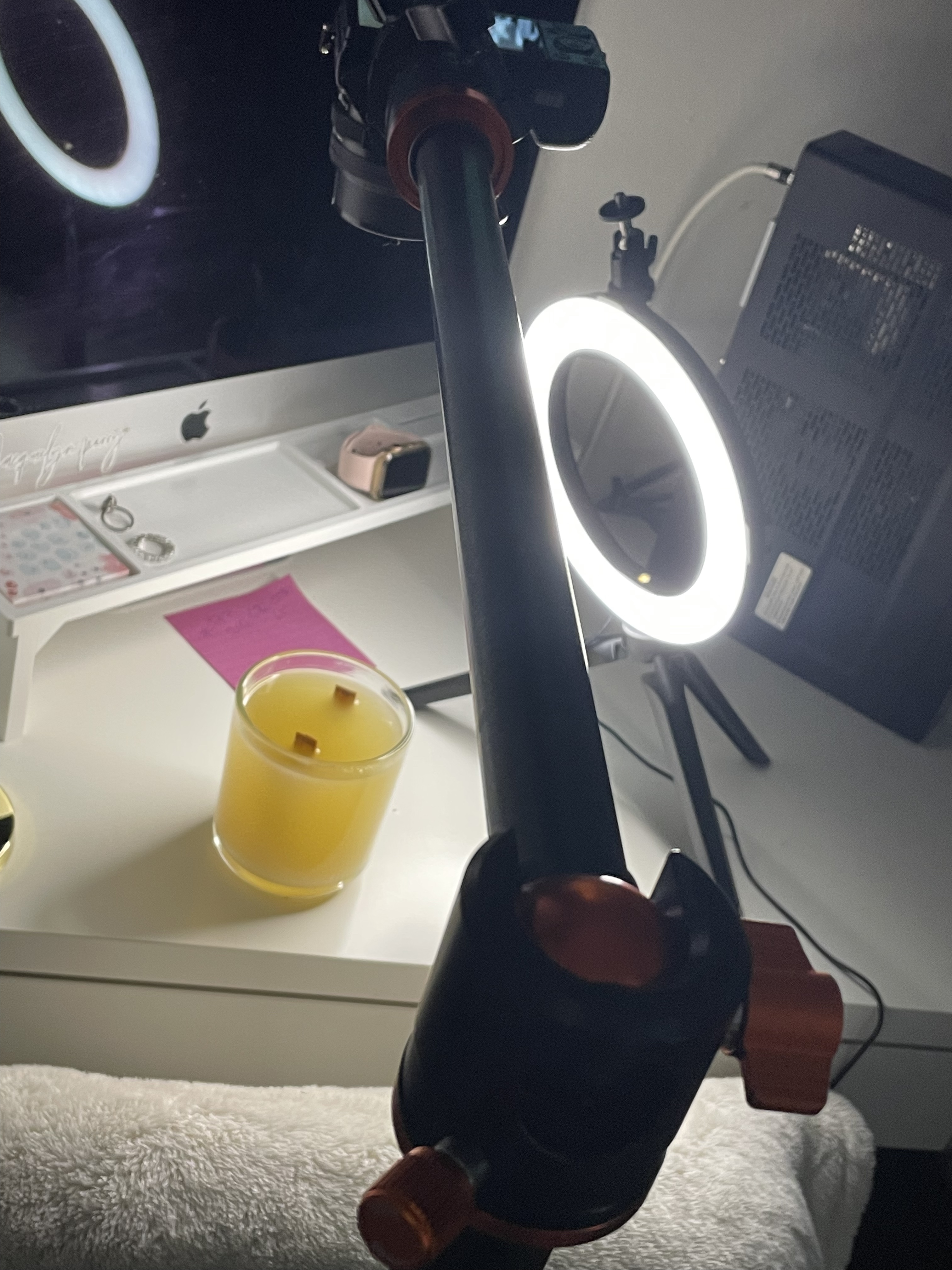 Me encanta poder sostener el brazo y sacar fotos geniales desde diferentes ángulos. Además, es pesado, así que se mantiene en pie sin volcarse con el peso de la cámara. Admito que es tan alto que no podía creer que me ayudara a fotografiar mis velas en Alme Candles Co. :)