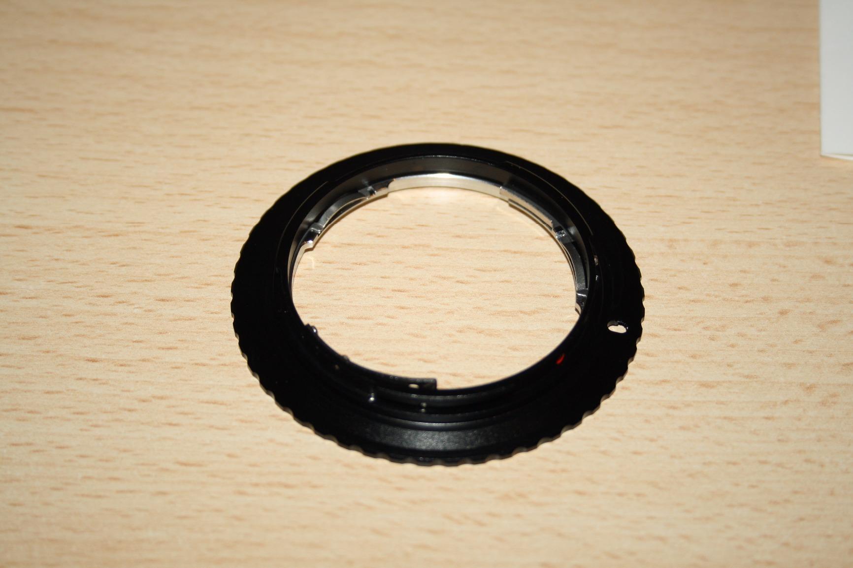 Este adaptador (para lentes Nikon a cámaras Canon) debe funcionar con una separación de 2 o 3 mm entre las superficies de apoyo para mantener un enfoque correcto. El mayor desafío técnico es instalar un mecanismo (una pequeña palanca) que permita soltar el pasador de alineación del adaptador al lente. Tenía un adaptador más económico cuyo mecanismo del pasador falló y tuve que cortarlo. Este K&F parece estar mejor fabricado. Con cualquier adaptador como este, le recomiendo que revise cuidadosamente el mecanismo del pasador antes de cada instalación. Asegúrese de que las piezas no estén dobladas y que los pequeños tornillos no estén sueltos.