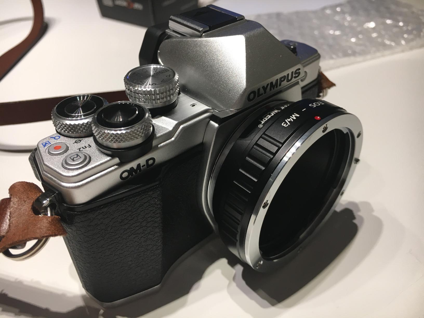 Perfecto montaje tanto en la E-M10 MArk II como con los objetivos, no tiene conexion por lo que se pierden los automatismos, pero es perfecto para objetivos con apertura manual