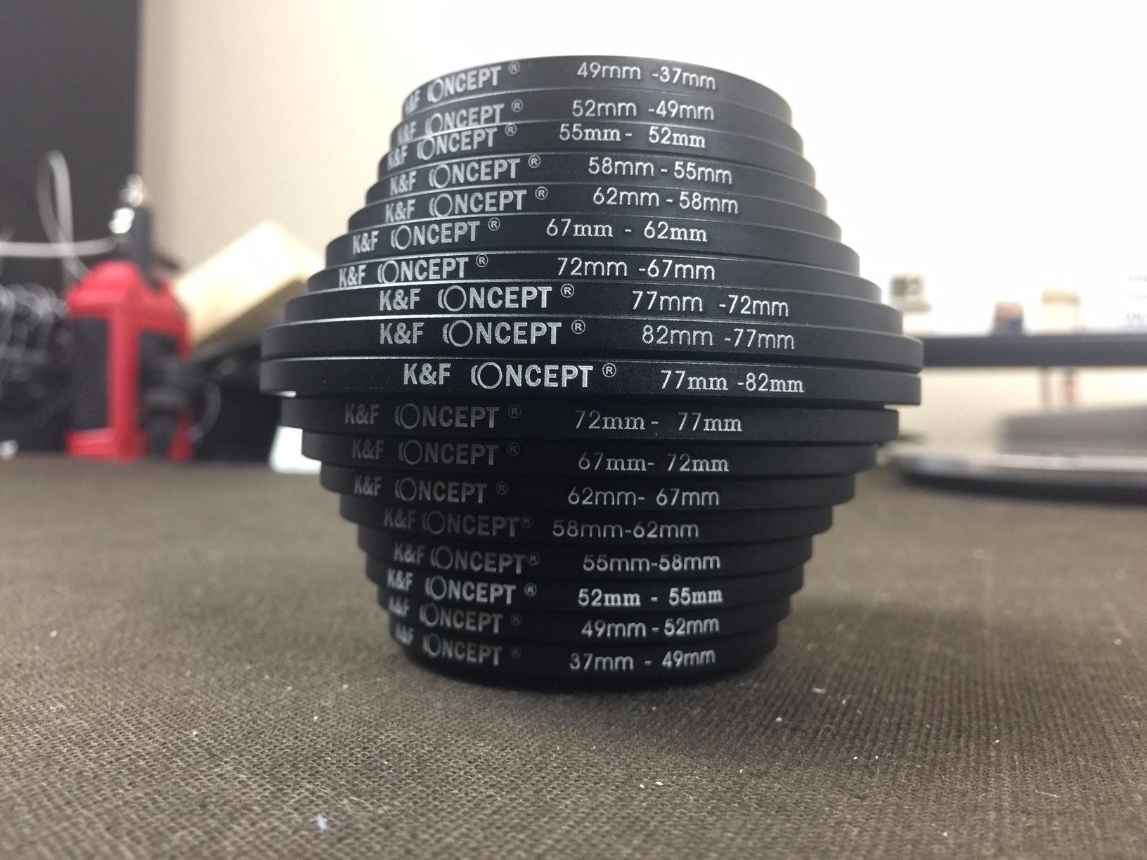 El juego combinado de anillos de 18 piezas, con elevador y reductor, funciona de maravilla. Las roscas mecanizadas del filtro son lisas y se colocan y desmontan con facilidad. Excelente relación calidad-precio. De hecho, este es el segundo juego de adaptadores K&F que compré el mes pasado. Usé algunos tamaños del juego inicial y quería tener un juego de repuesto completo. Excelente calidad.