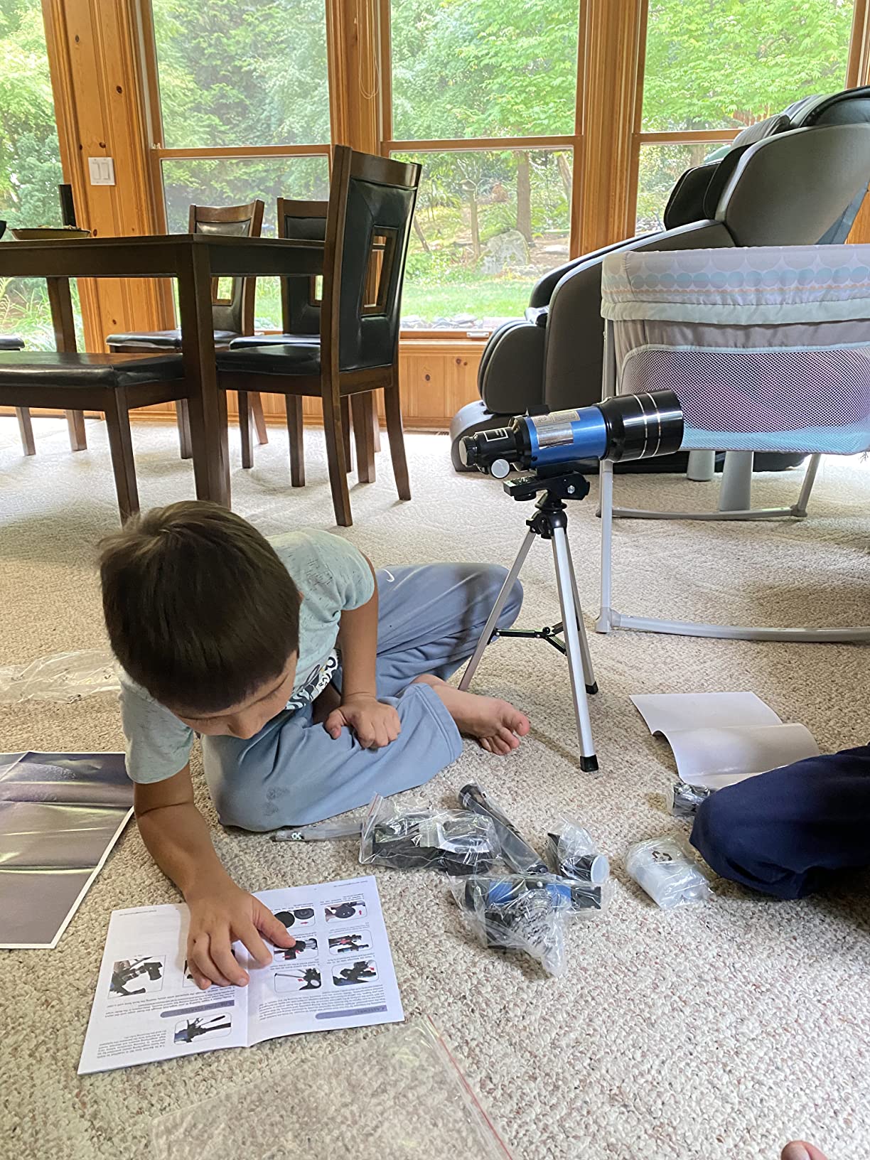 Le compré este telescopio a mi nieta de 10 años para sorprenderla. Le encantó. Fue fácil de usar, fácil de armar y excelente por el precio.