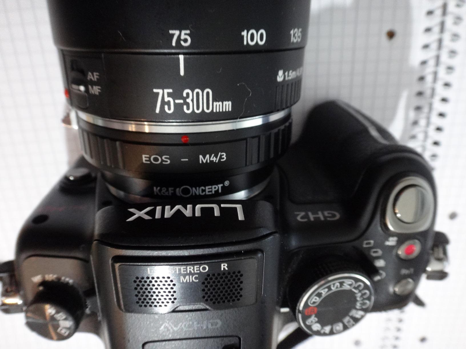 ...¡está hecho a medida! Con la K&F EOS-M4/3 ahora puedo usar el objetivo zoom "Canon EF 75-300 mm f/4-5.6 III" en mi Panasonic GH2. La designación "EF" en el objetivo indica su tamaño de rosca. Puedes encontrar el tamaño de rosca de la cámara en el manual o en la página web del fabricante. En mi caso, la designación es MFT (Micro Cuatro Tercios). Al ser solo una conexión de material y no electrónica, el enfoque y la apertura deben ajustarse manualmente. La cámara suele detectar la ausencia de conexión electrónica, por lo que es necesario realizar un cambio en los ajustes. Para la GH2: en el menú individual de la página 7, última entrada, activa "Disparador sin objetivo". Por supuesto, también existen adaptadores con conexión electrónica. Sin embargo, la compra solo merece la pena en algunos casos. Es importante tener en cuenta que con este adaptador de K&F hay que aceptar una pérdida de calidad. Pero por el precio, esto no es un punto a discutir. En mi opinión, el adaptador de lente es de muy alta calidad, definitivamente no es de plástico barato y se adapta muy bien a la GH2.