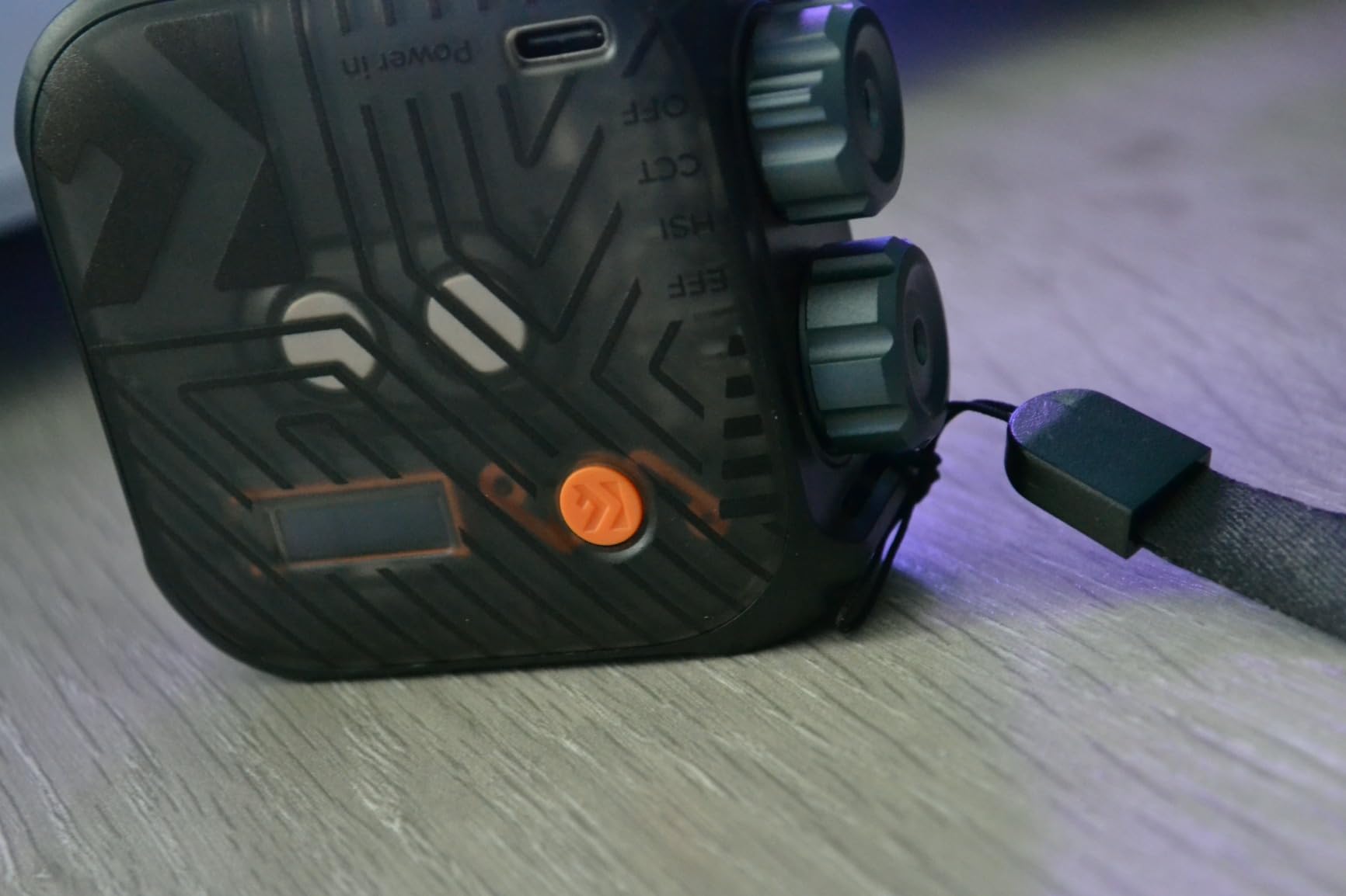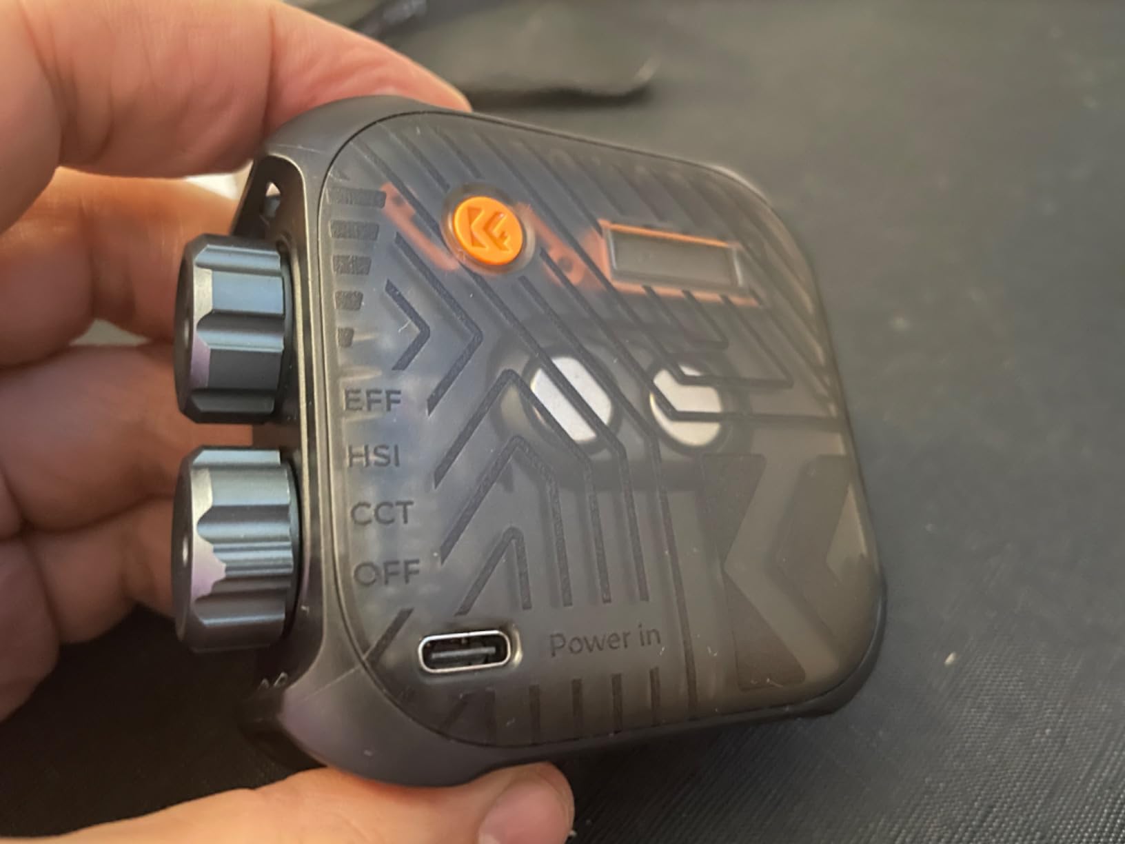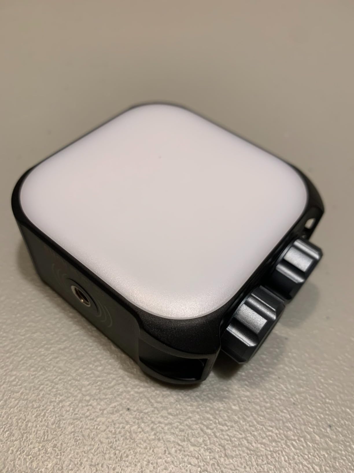 Me encanta que uno de los diales sea un interruptor de encendido/apagado y modo dedicado; es bueno que el otro dial sea un dial de ajuste con el botón naranja como palanca. No encontré que esta unidad fuera demasiado complicada de usar y fue bastante fácil leer la pequeña pantalla LED. En cuanto a la construcción, encontré que los plásticos eran de alta calidad y rígidos; aprecio que la parte trasera tenga imanes fuertes para sujetar la unidad en superficies metálicas a base de hierro. El cordón incluido tiene una longitud adecuada para uso portátil. Durante el funcionamiento, noté que los dos puntos de montaje de metal de 1/4 de pulgada se calientan; No escuché ningún zumbido electrónico ni ningún ruido proveniente de la unidad. Creo que fue sencillo cargar la luz con el cable USB-C incluido. Con los puntos de montaje de metal duales de 1/4 de pulgada, encuentro que son más seguros cuando quiero apilar un montón de estas luces LED juntas o conectar un micrófono externo.