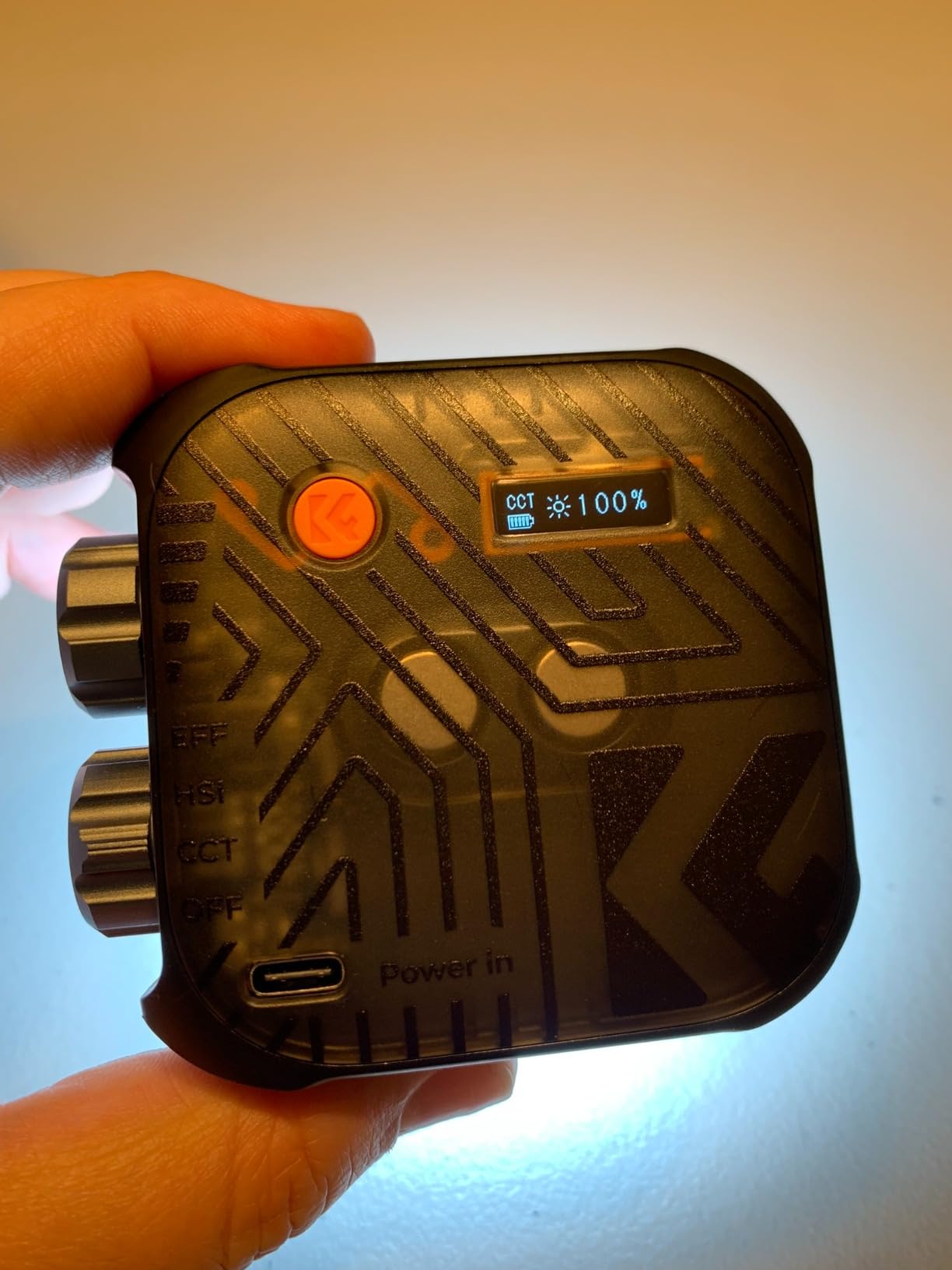 Esta es una excelente luz LED RGB para video/fotografía, muy compacta y portátil. Tiene una muy buena calidad de construcción con lindas perillas de metal sólido que tienen una gran sensación y hendiduras sólidas para ajustes. La carcasa también se siente muy duradera con orificios roscados de 1/4-20 en dos lados opuestos para montarla fácilmente en un trípode u otro soporte de iluminación. Con su batería incorporada de 2000 mAH, es muy portátil y también se puede alimentar/cargar usando el puerto USB-C en la parte posterior de la carcasa. La pantalla LED trasera es pequeña pero muy brillante y fácil de leer. Hay 21 efectos de luz incorporados y ofrece LED CRI 96+ de color de 2500K-9900K en modo EFF. Además de los efectos, tiene otros dos modos de luz, HSI/CCT para un control total sobre el tono, la intensidad y la saturación, la temperatura del color o el color de la luz sólida, lo que brinda 360 grados completos de color para elegir. Los botones son simples, intuitivos y funcionan exactamente como se espera, lo cual es genial. La luz incluye una guía del usuario, un cordón, un cable de carga USB de CA y un adaptador para una zapata fría. Es una fuente de luz LED muy bien diseñada y con muchos usos. La recomiendo.