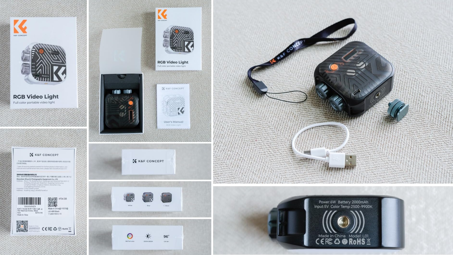 Esta luz de video K&F Concept es pequeña pero está repleta de funciones. Viene en una caja de presentación con un cable de carga, un cordón para la muñeca, una zapata para trípode e instrucciones. Hay dos montajes para trípode, superior e inferior, con un ajuste estándar de ¼ de pulgada (ver fotos). Hay dos interruptores que son de tipo rotatorio que funcionan bien, además de un solo interruptor de color naranja que se presiona para operar en la parte posterior. Hay dos imanes en la parte posterior: usé una regla para medir, pero también la usé para montar la luz y no se resbaló porque los imanes son bastante fuertes. Los diversos modos de luz están bien definidos en las especificaciones, ¡así que no los repetiré aquí! La salida de luz puede ser tenue o brillante según sea necesario; hay un pequeño panel de estado LCD en la parte posterior que está bien pensado y es útil, pero no demasiado intrusivo. La parte trasera magnética es, como se ha señalado, bastante resistente en relación con el peso, por lo que es posible montarla en cualquier cosa, desde un radiador hasta la puerta de un frigorífico o cualquier objeto metálico, etc. La estoy utilizando en mi videocámara JVC como luz de "retroceso" actualmente, ya que tiene un tamaño bastante bueno para guardarla en mi bolso, además de que la salida de luz, tamaño por tamaño, es muy adecuada para un área pequeña. Una luz práctica y repleta de funciones con controles fáciles de manejar.