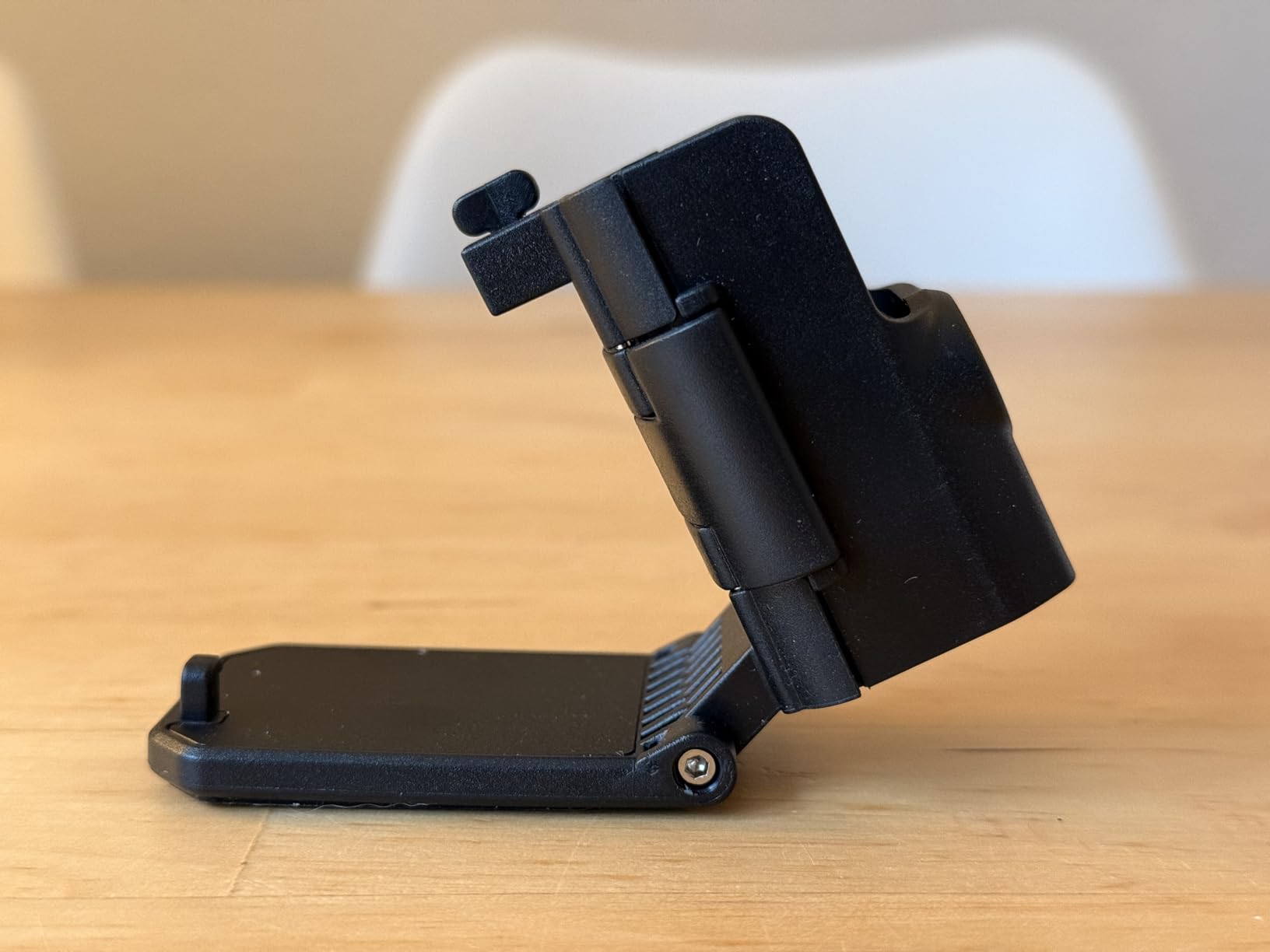 Este soporte magnético de K&F Concept es un accesorio muy práctico y funcional para la DJI Osmo Pocket 3. Funciona tanto como soporte de escritorio como solución de montaje magnético, lo que te da flexibilidad para configurar la cámara. La sujeción magnética es fuerte y fiable; no me preocupó que la Pocket se cayera una vez montada en una superficie metálica. La posibilidad de inclinar la cámara hacia adelante y hacia atrás ofrece un buen nivel de ajuste, y al combinarse con el estabilizador de la Pocket, te ofrece un gran control del ángulo de disparo cuando la unidad está montada en una superficie. Si bien la base ayuda a estabilizar la Pocket en superficies planas, su tamaño es algo estrecho, por lo que puede inclinarse si se golpea al colocarla horizontalmente, no sobre una superficie metálica. Aun así, es mucho más estable que colocar la Pocket de pie. Se instala fácilmente, no bloquea el puerto de carga ni los botones, y ofrece una protección adicional alrededor del cuerpo de la cámara. No queda completamente plana una vez plegada, pero es lo suficientemente compacta como para llevarla en una bolsa de cámara o en un bolsillo grande sin problema.