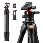 Trípode compacto de aluminio de 185 cm para cámara, trípode de viaje portátil compatible con iPhone, capacidad de 10 kg, cabezal de bola Arca Swiss para DSLR sin espejo, nivel láser, caza, K&F CONCEPT
